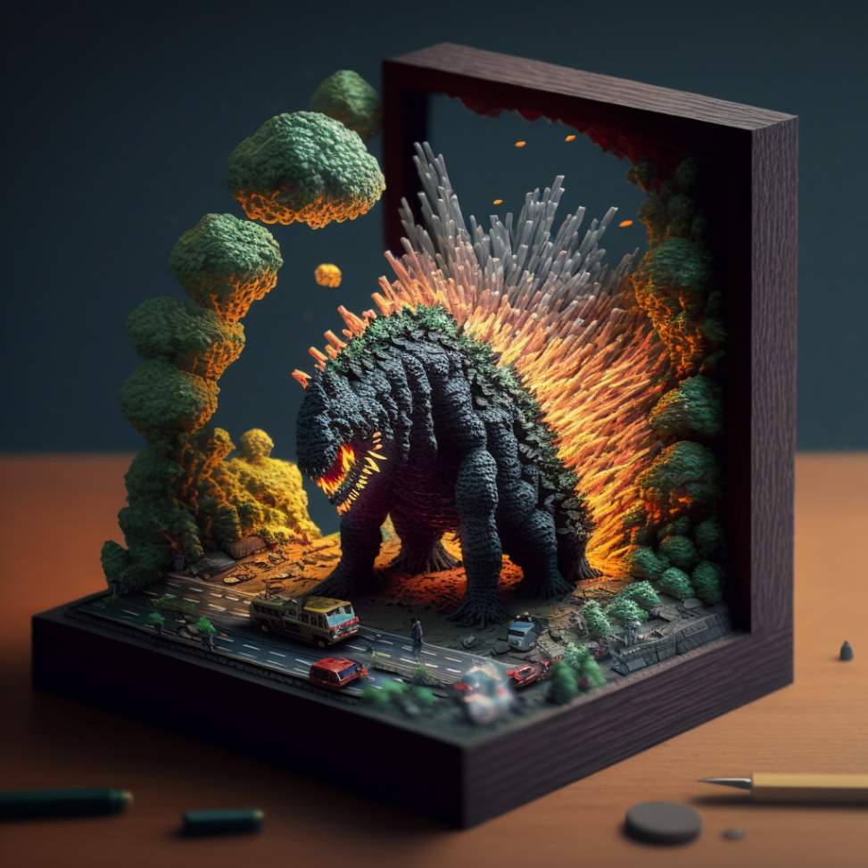 Godzilla destroying a country